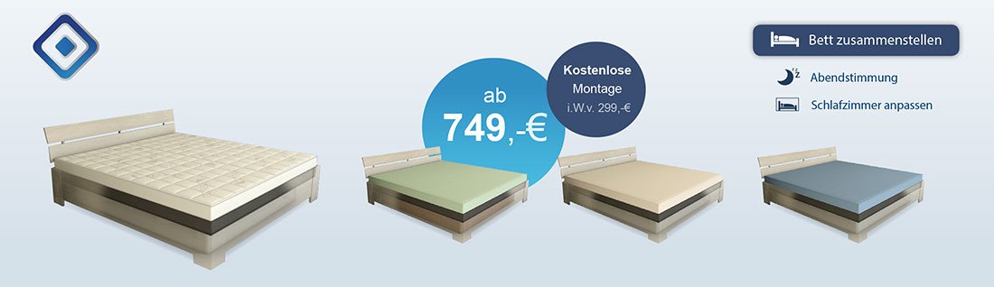 Gestalten Sie Ihr eigenes Traumbett in unserem einzigartigen 3D-Konfigurator.